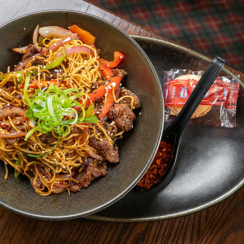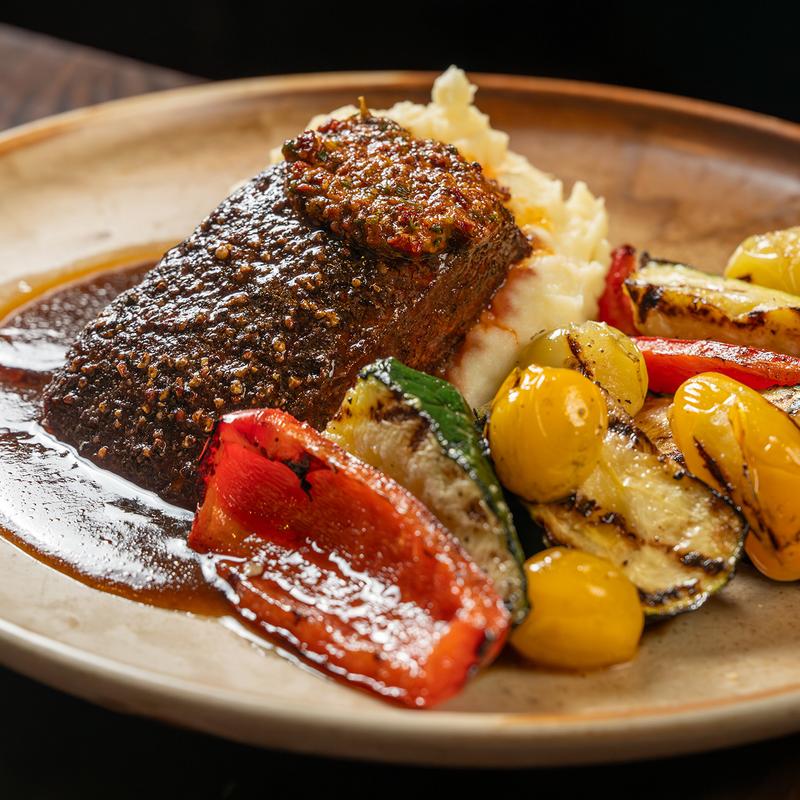 1/2 lb lightly dusted Alberta sirloin, sweet soy glaze, Japanese steak sauce, and toasted sesame seeds