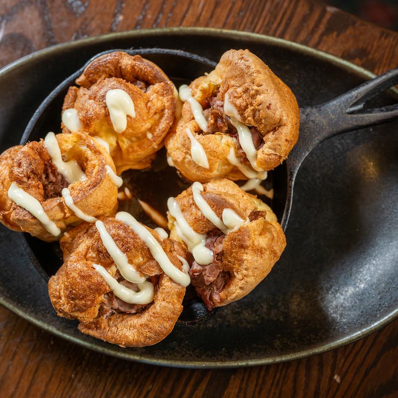 Shaved roast beef, horseradish aioli, pan jus.
