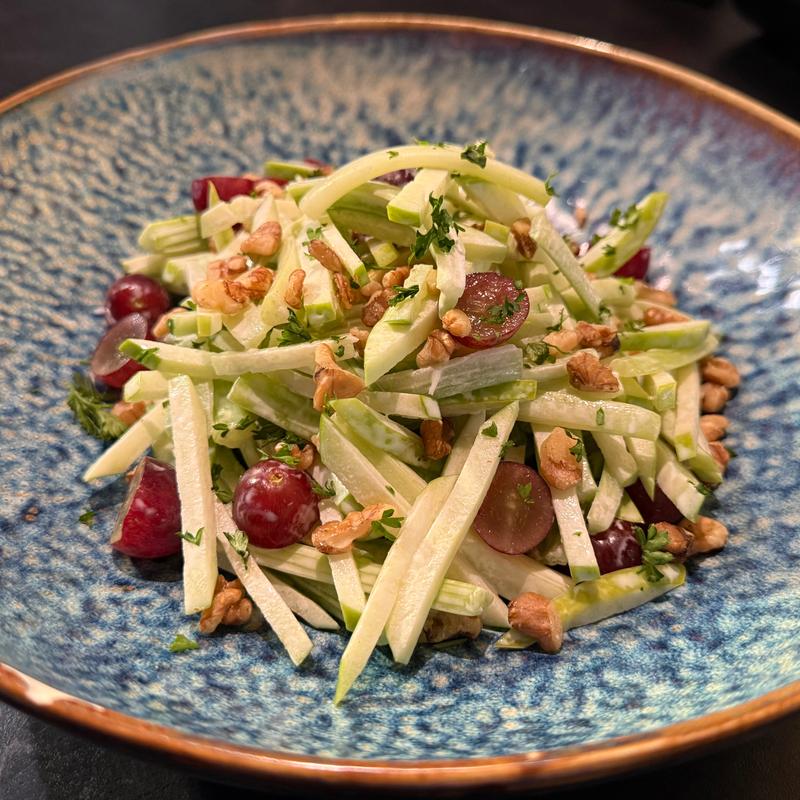 Romain lettuce granny smith apple, red grape, celery, walnut, lemon juice, Chantilly mayonnaise, parsley
