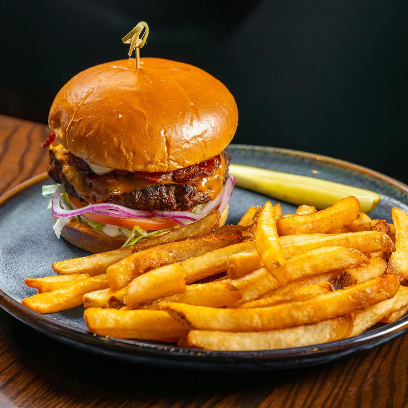 Fresh Canadian chuck, cheddar, smoked bacon, lettuce, tomato, red onion, burger sauce.